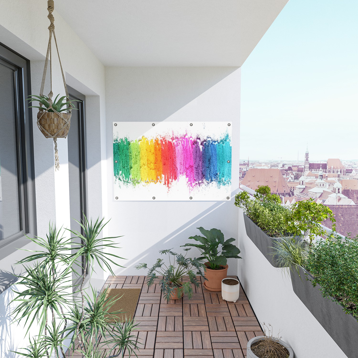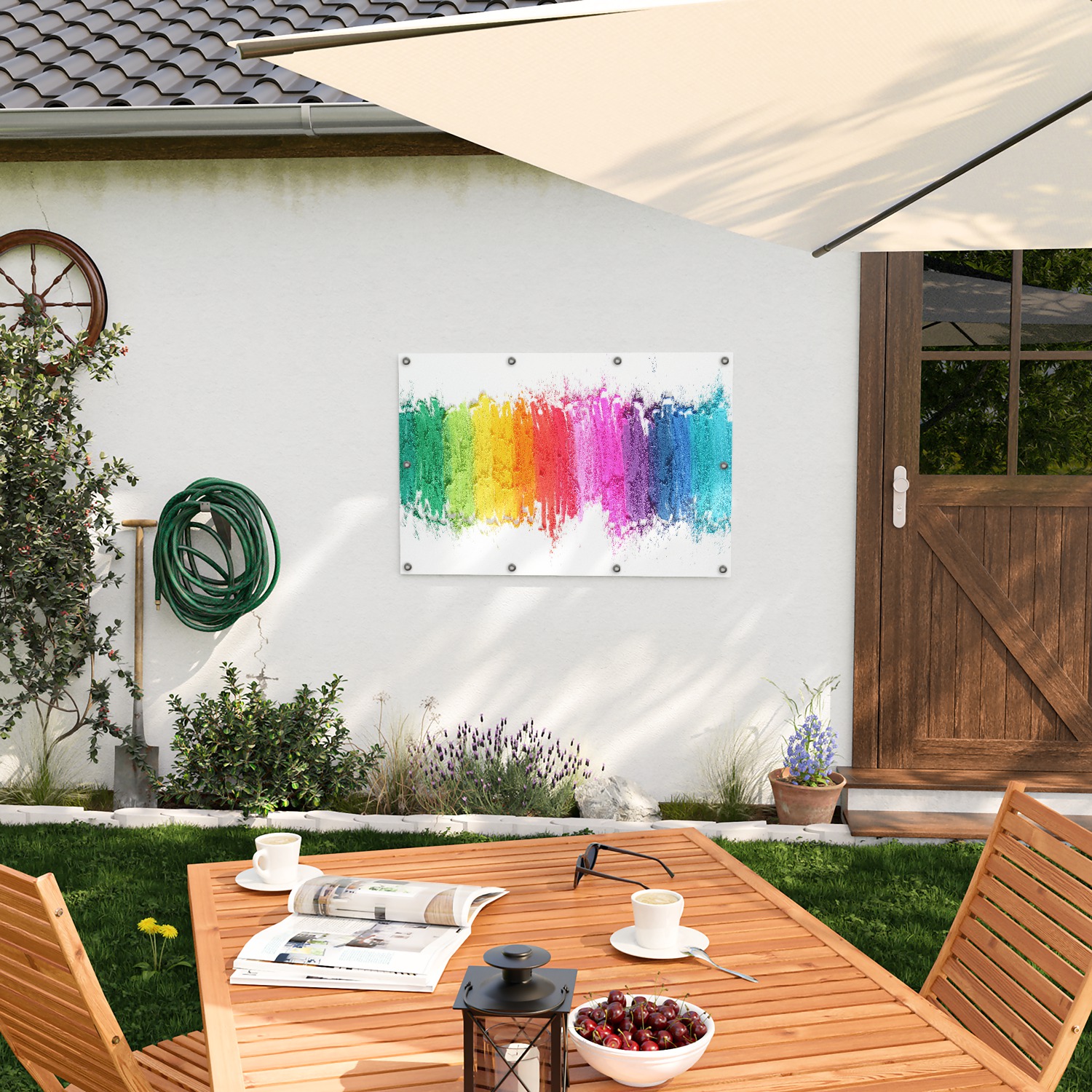 Gartenposter Regenbogenstreifen auf weißem Hintergrund - Bunter Anstrich 80 x 120 cm