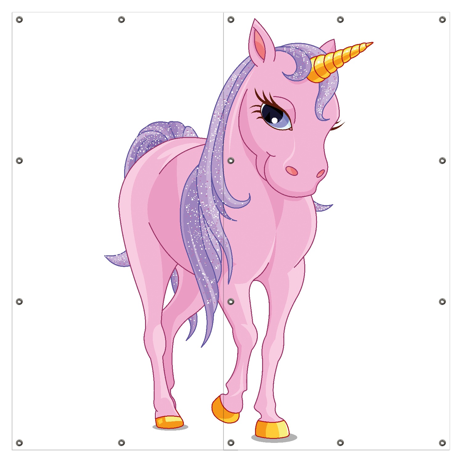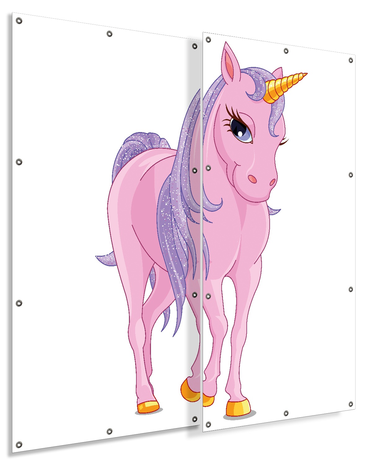 Gartenposter Einhorn in rosa mit Schweif in lila II 180 x 180 cm. 2-teilig