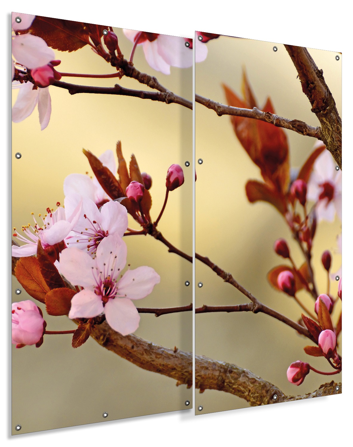 Gartenposter Frühlingsgefühle I - Kirschblüten in Nahaufnahme 180 x 180 cm. 2-teilig