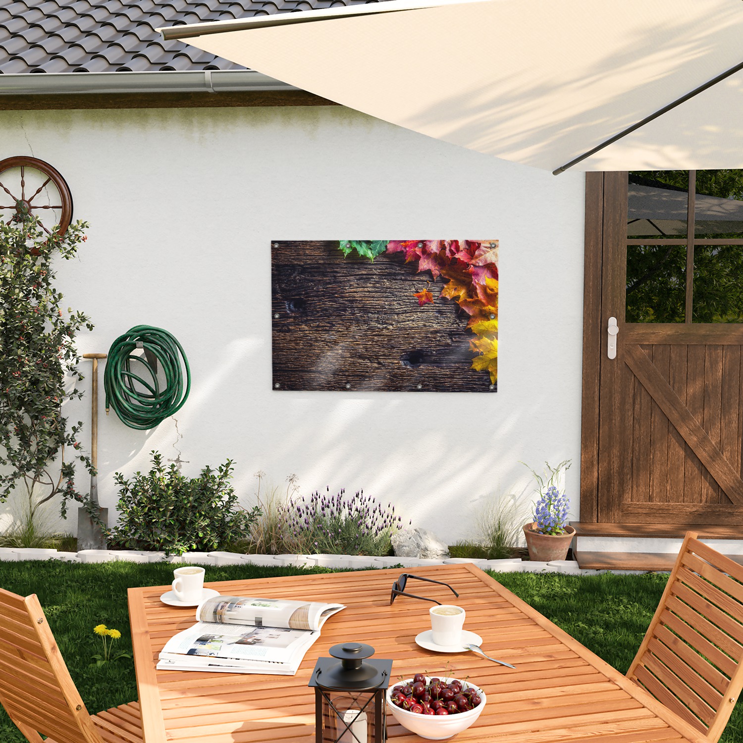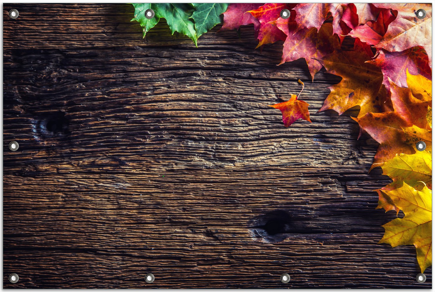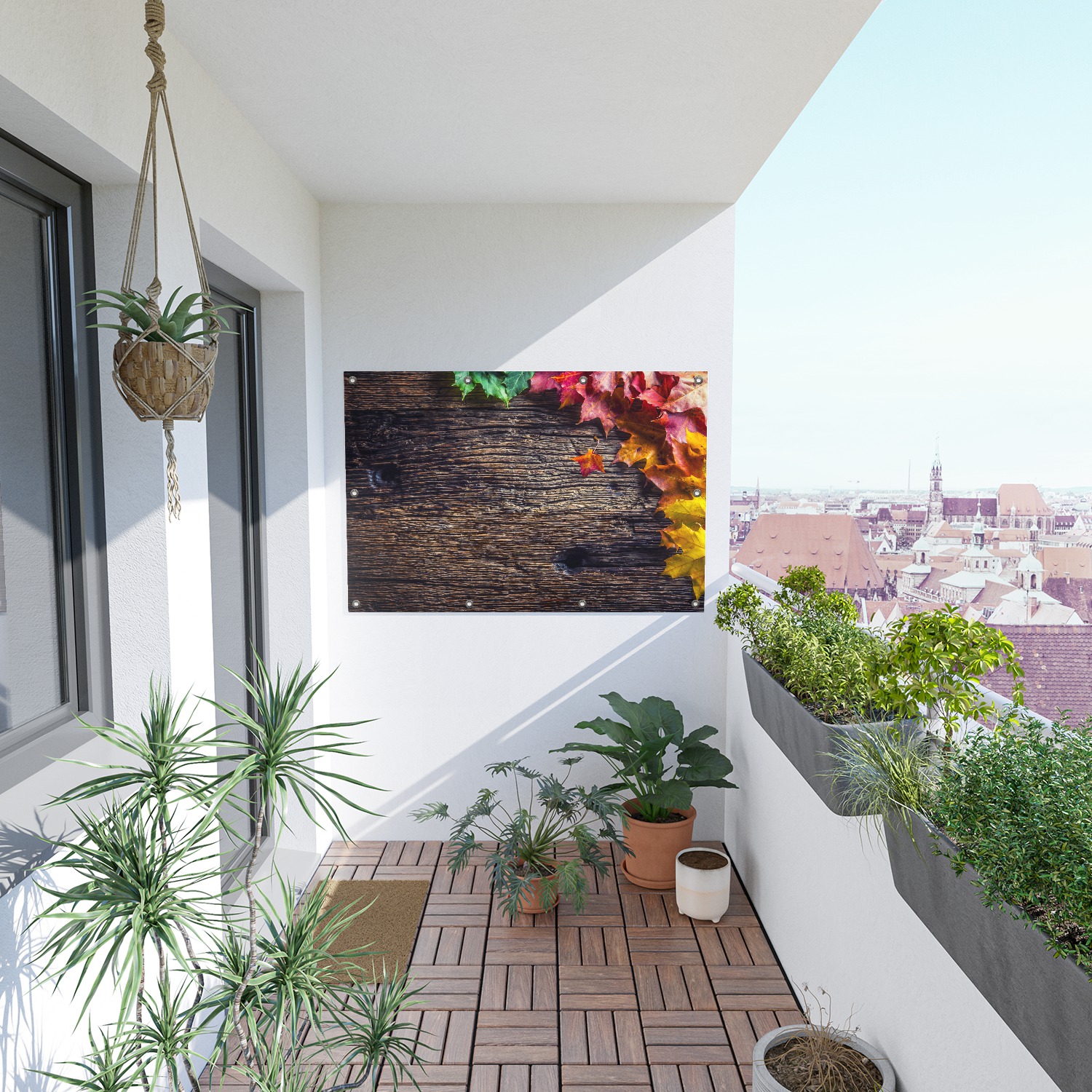 Gartenposter Herbstblätter auf altem Holz 80 x 120 cm