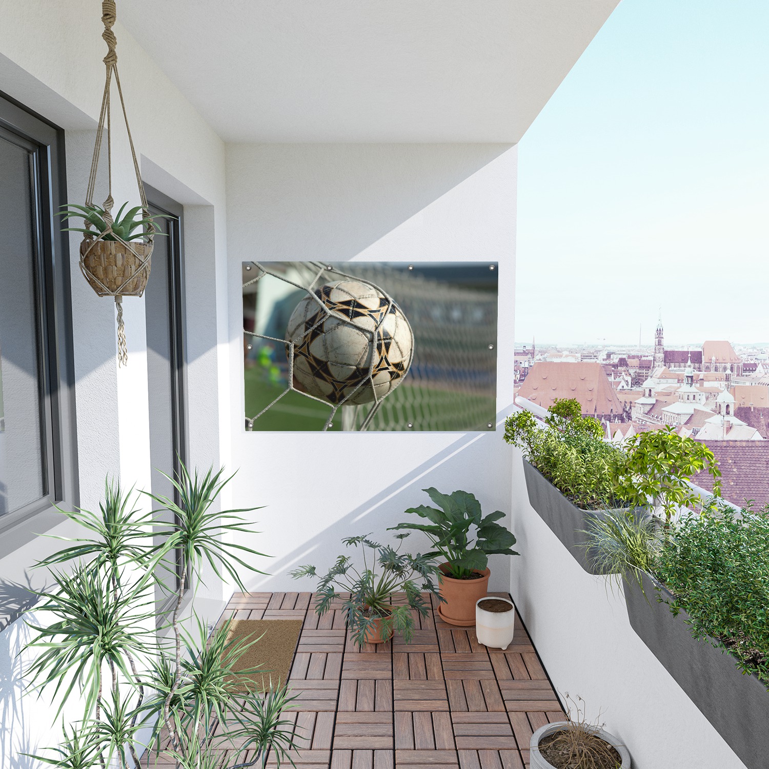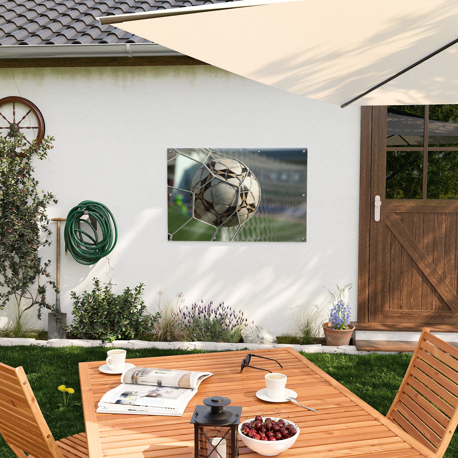 Gartenposter Fußball - Ball im Tor - Bolzplatz 80 x 120 cm