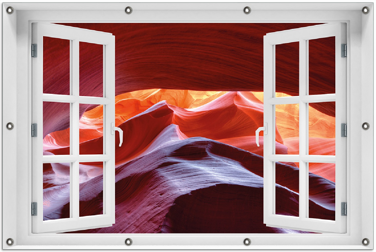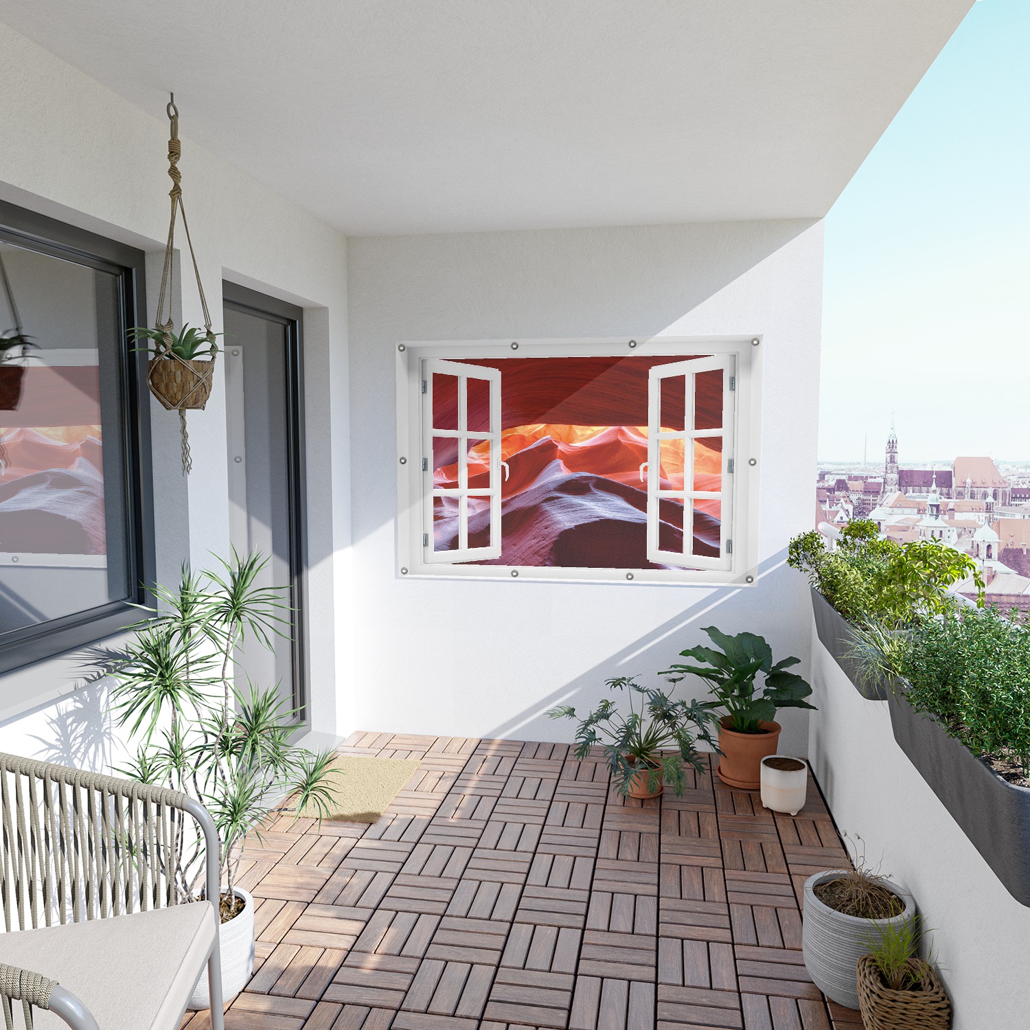 - Outdoorposter für den Garten - hohe UV- und Witterungsbeständigkeit - mit aufgedrucktem Fensterrahmen